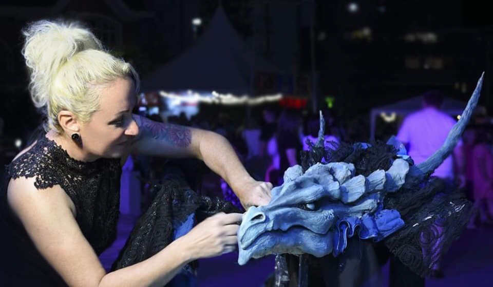 Cuando comienzo un trabajo primeramente lo hago en arcilla, como todas mis esculturas y luego las finalizo con lo que tenga a mano; trozos de tela, ramas, flores, pedazos de mi vestuario. Todo suma al momento de dar volumen, forma y color, es parte del trabajo y sobre todo del desafío. Sentarse a modelar lleva muchas horas, por eso al realizar arte en vivo es necesario ir con una escultura ya avanzada y más aún mis diseños, que suelen ser bastante complejos.